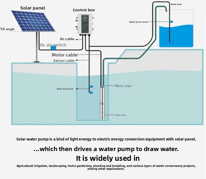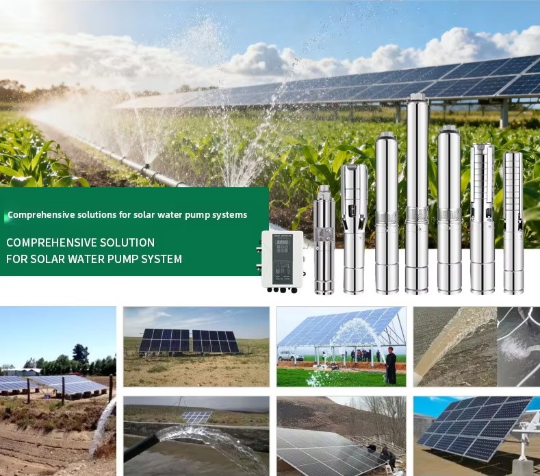 Usually,a solar pump system is composed of solar pump,controller(inverter/regulator),solar panels,and solar panels selection and connection way depends on pump's power and voltage.