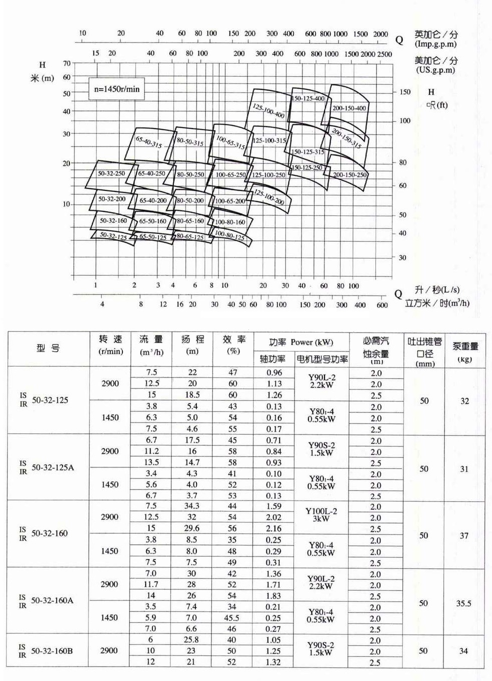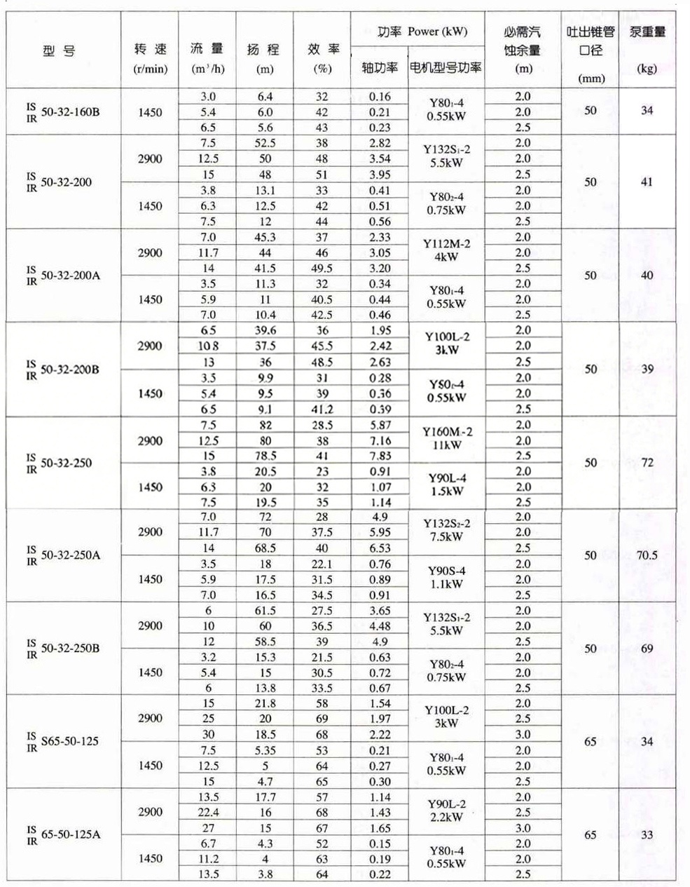 转速:2900r/min和1450r/min进口直径:50~200mm
