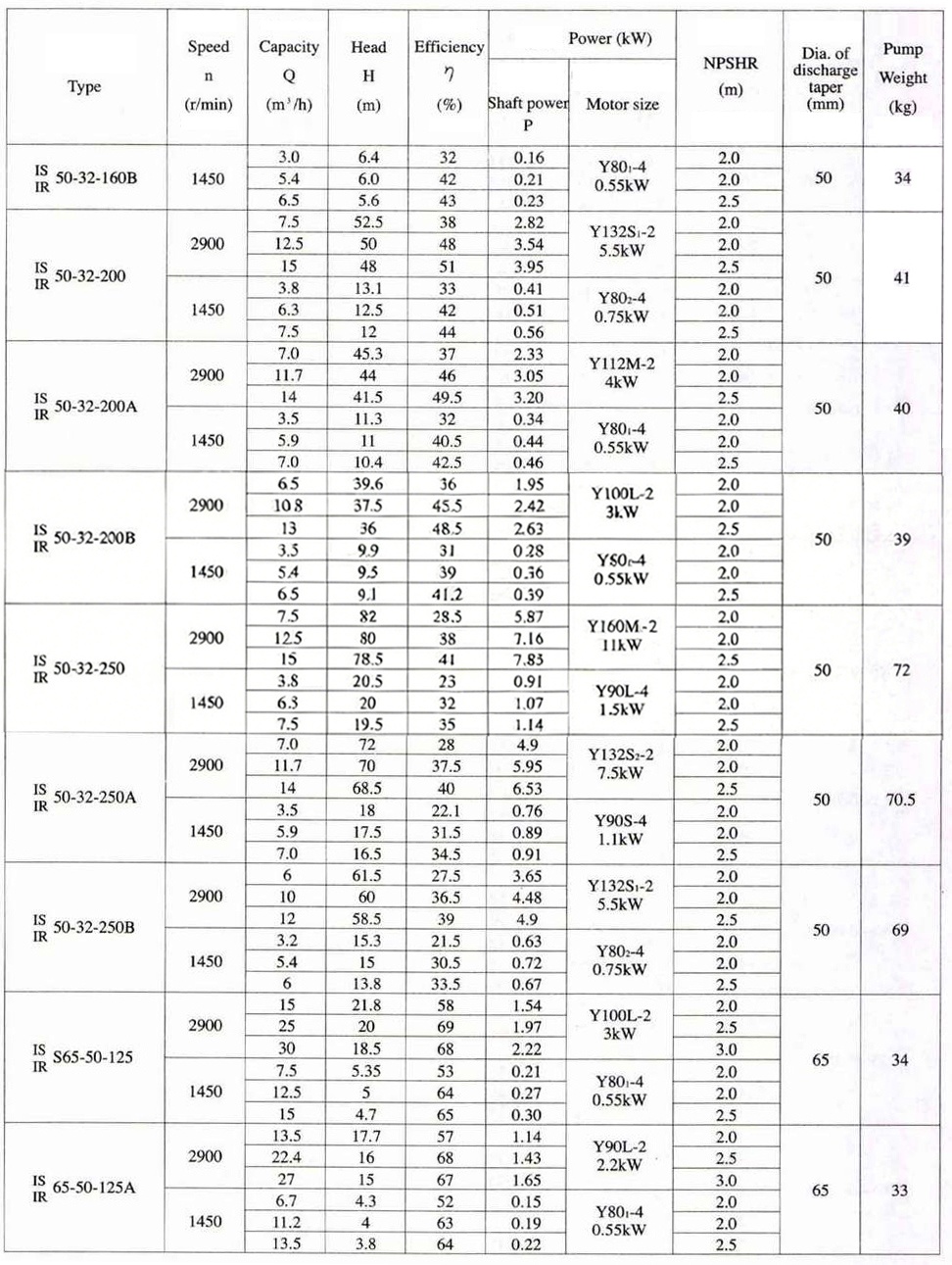 Both IS and IR are the single -stage and single-suction centrifugal pumps, used to deliver clean water or the liquids similar to the waterphysically and chemically. IS handles the liquids with temperature not exceeding 80C while the temperature of the liquids handled by IRs not more than I50°C. finding the applications for water feed and supply service in plants, towns and tne uses in farm imrigation.