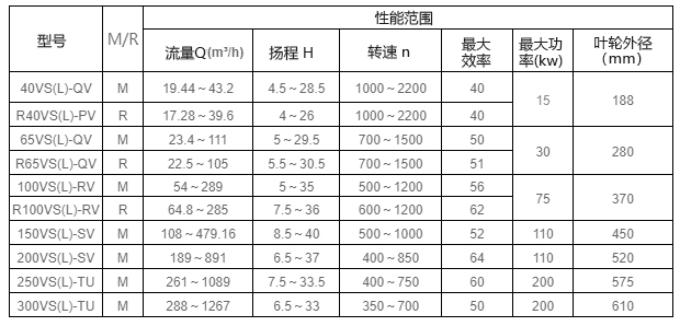VS/VSR型液下泵型谱