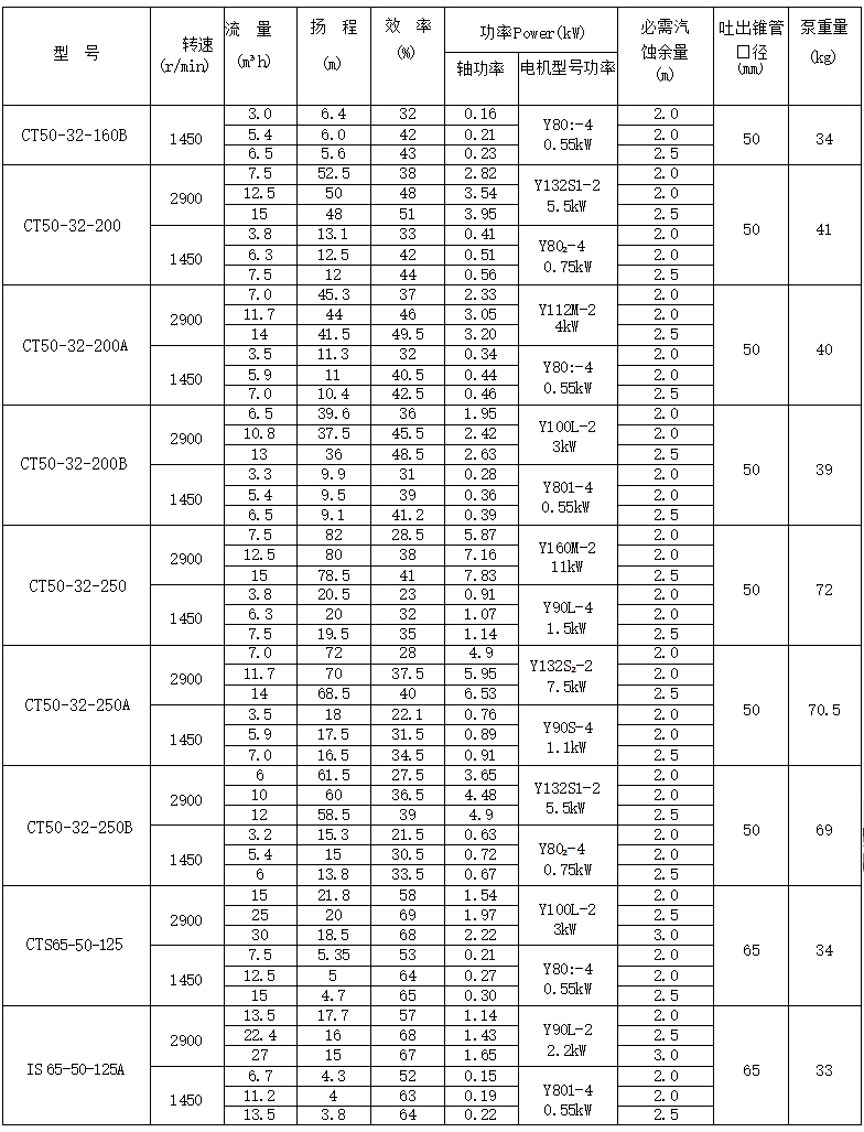 IS125-100-200 单级单吸清水泵 流量:180m3/h 扬程:50 m 转速:2900rpm